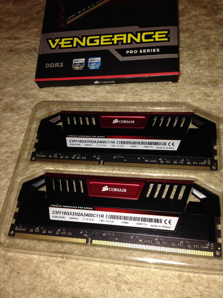 メモリー・・・・CorsairのDDR3 8GBx2枚 計16GBですwww