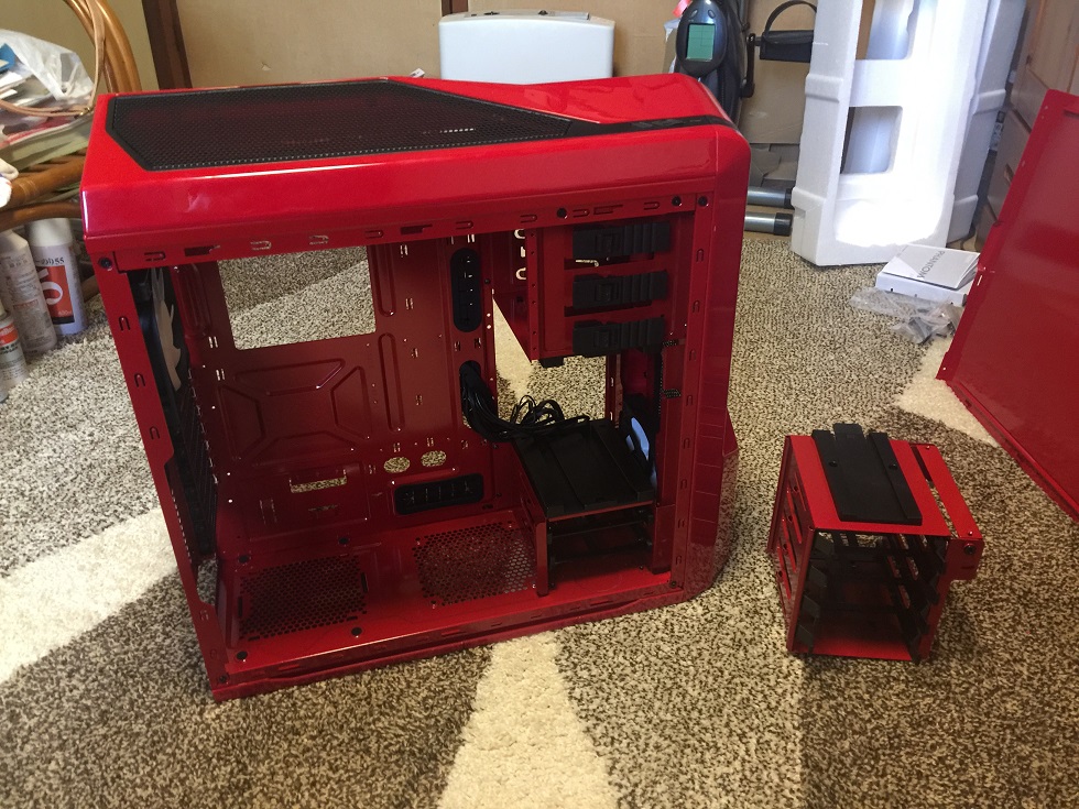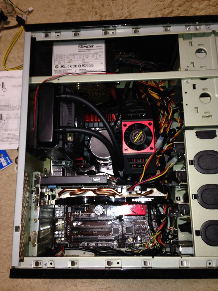 ここに、水冷クーラーのヒートシンクを取り付け、ケース上部に付いてるファンを外し