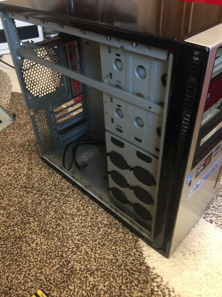 マザーボードを取り出した上体ですが、前面パネルをあけてHDDを入れる仕様です。