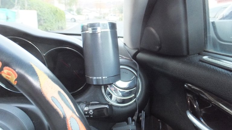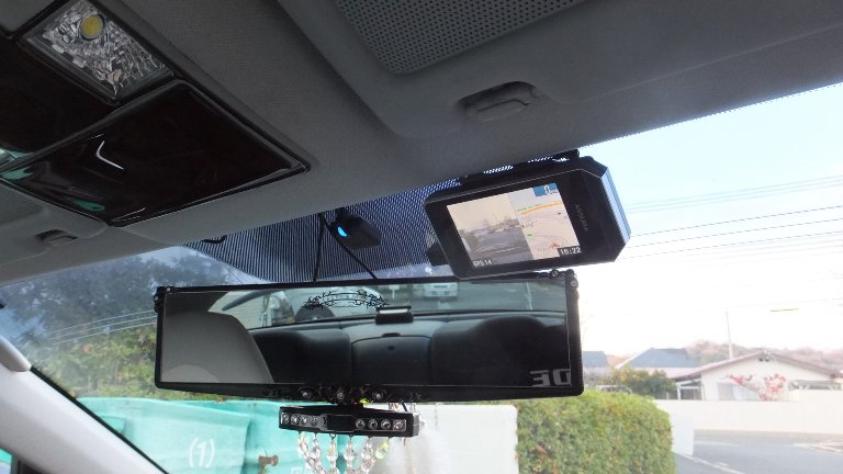 そこで仕方なく、ルームミラーの上ぐらいのガラス面に設置www