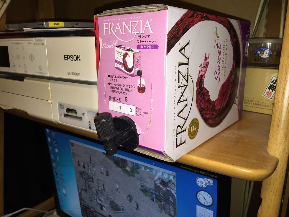 PC机のプリンターの横にセットして飲んでますwww