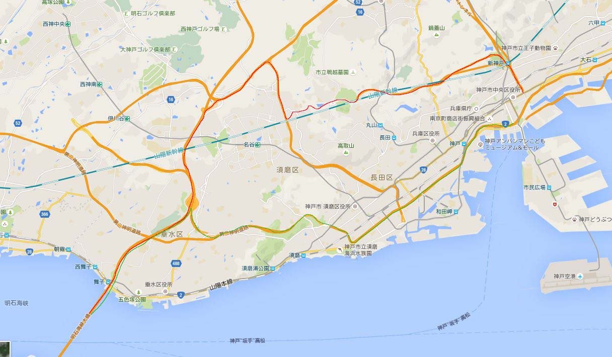 阪神高速須磨辺りで火災事故を避ける為に通行した迂回路を記載しておきますww